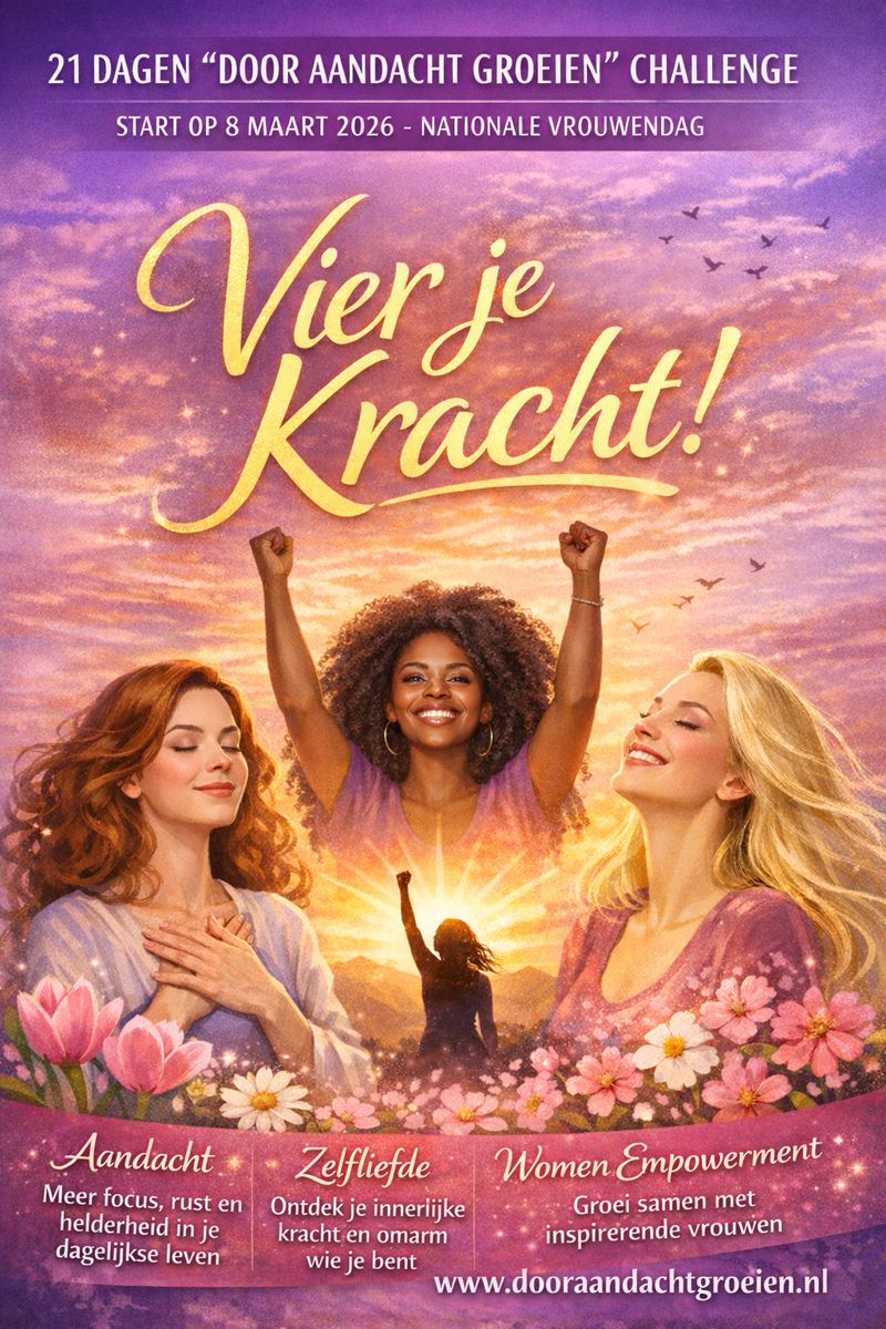 Met Aandacht, Zelfliefde en Women Empowerment als basis, sta je stil bij wat jij nodig hebt. De challenge brengt je meer rust in je hoofd, verdiept je zelfliefde en geeft je inzicht in wat jij nodig hebt om rustig, krachtig en in verbinding met jezelf verder te gaan!